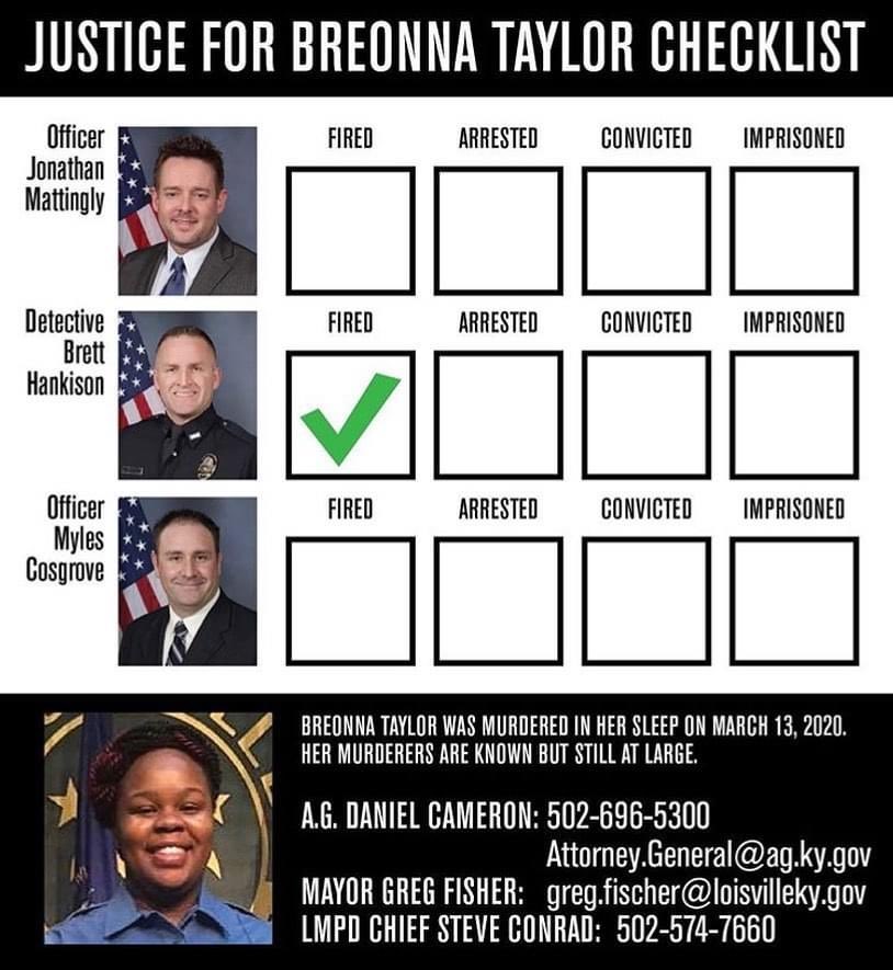 Arrest Brett Hankison, Jonathan Mattingly & Myles Cosgrove.