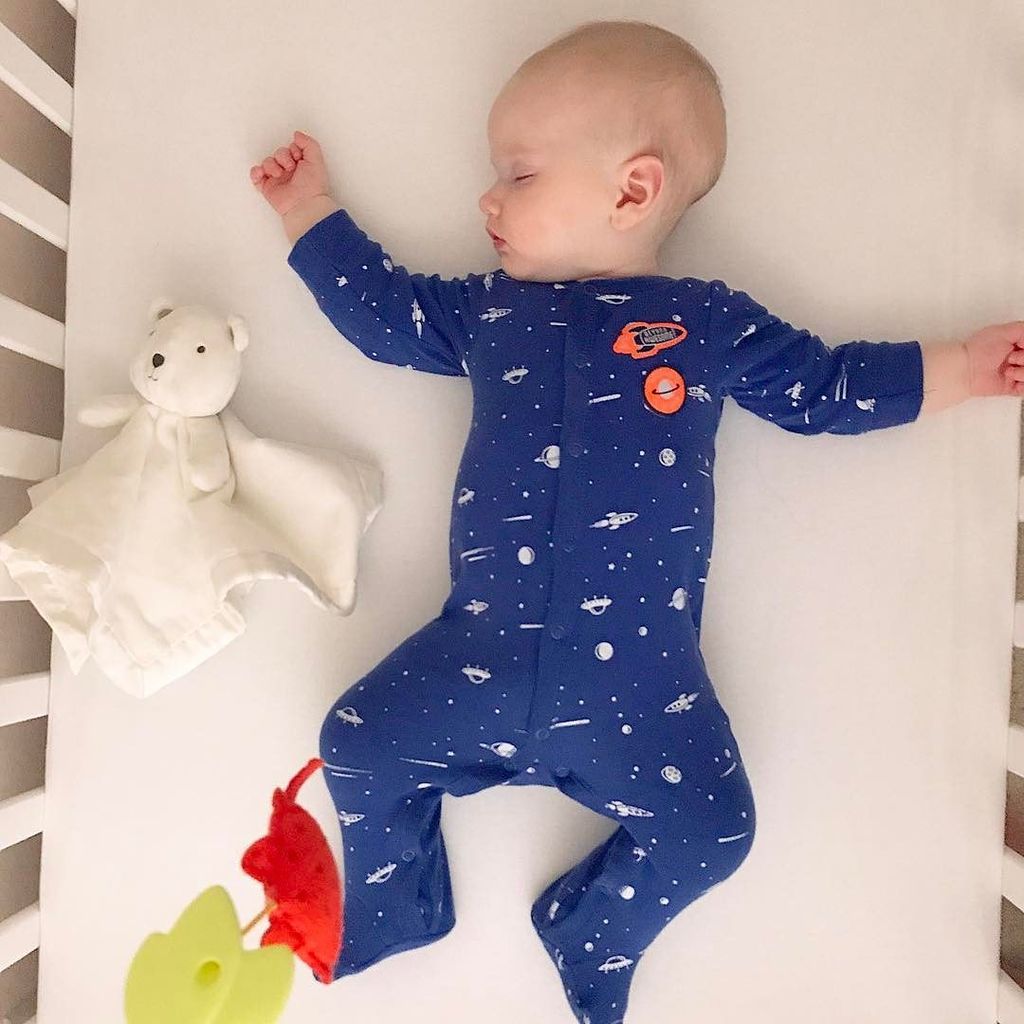 First nap in his new crib. I ordered the Lagoon colored finish, but Amazon sent a white one. Oh, well. #caspianmic… http://ift.tt/2patg80